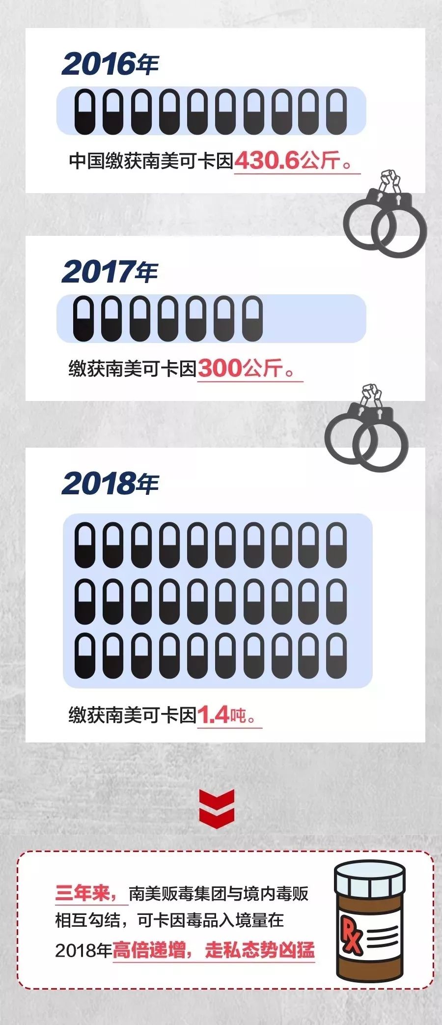 境外毒源威脅,除了“金三角”地區(qū)的毒品,還有南美可卡因。三年來,南美販毒集團(tuán)與境內(nèi)毒販相互勾結(jié),可卡因毒品入境量在2018年高倍遞增,走私態(tài)勢兇猛。