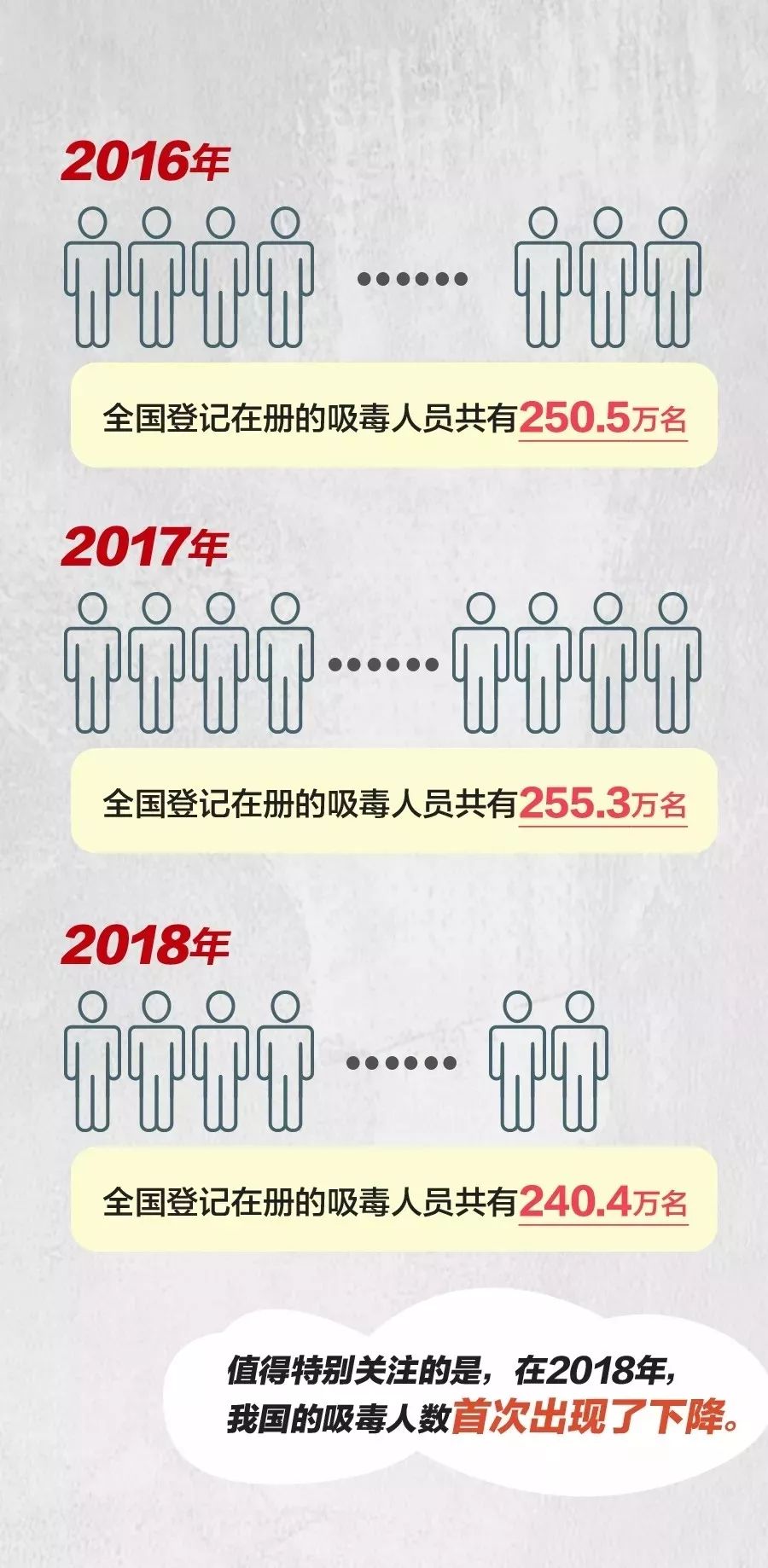 近日,國家禁毒委員會辦公室發(fā)布的《2018年中國毒品形勢報(bào)告》顯示,禁毒形勢得到改觀,現(xiàn)有吸毒人員數(shù)量首次出現(xiàn)下降。